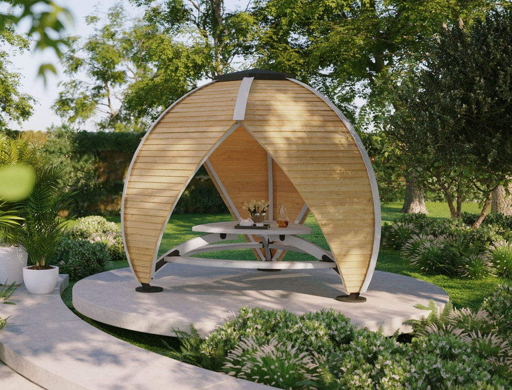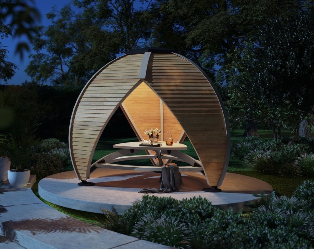 The Lichfield Shield Leisure Wooden Garden Shelter is an ideal way to enjoy your garden space, no matter what the weather is like. The Shelter provides protection from the elements, allowing you to carry on with your plans, even when it is cold or wet outside. The Shelter also features a central table and 360 degree Bench.