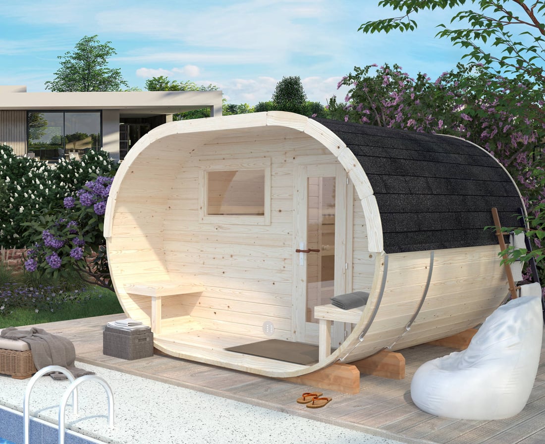 - 3340mm (10ft 10") Wide Wooden Sauna Room - Compact Modern design.