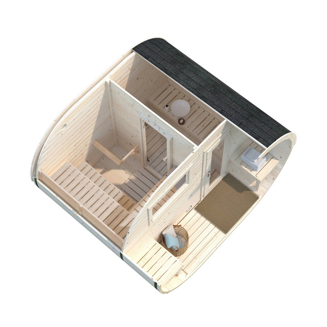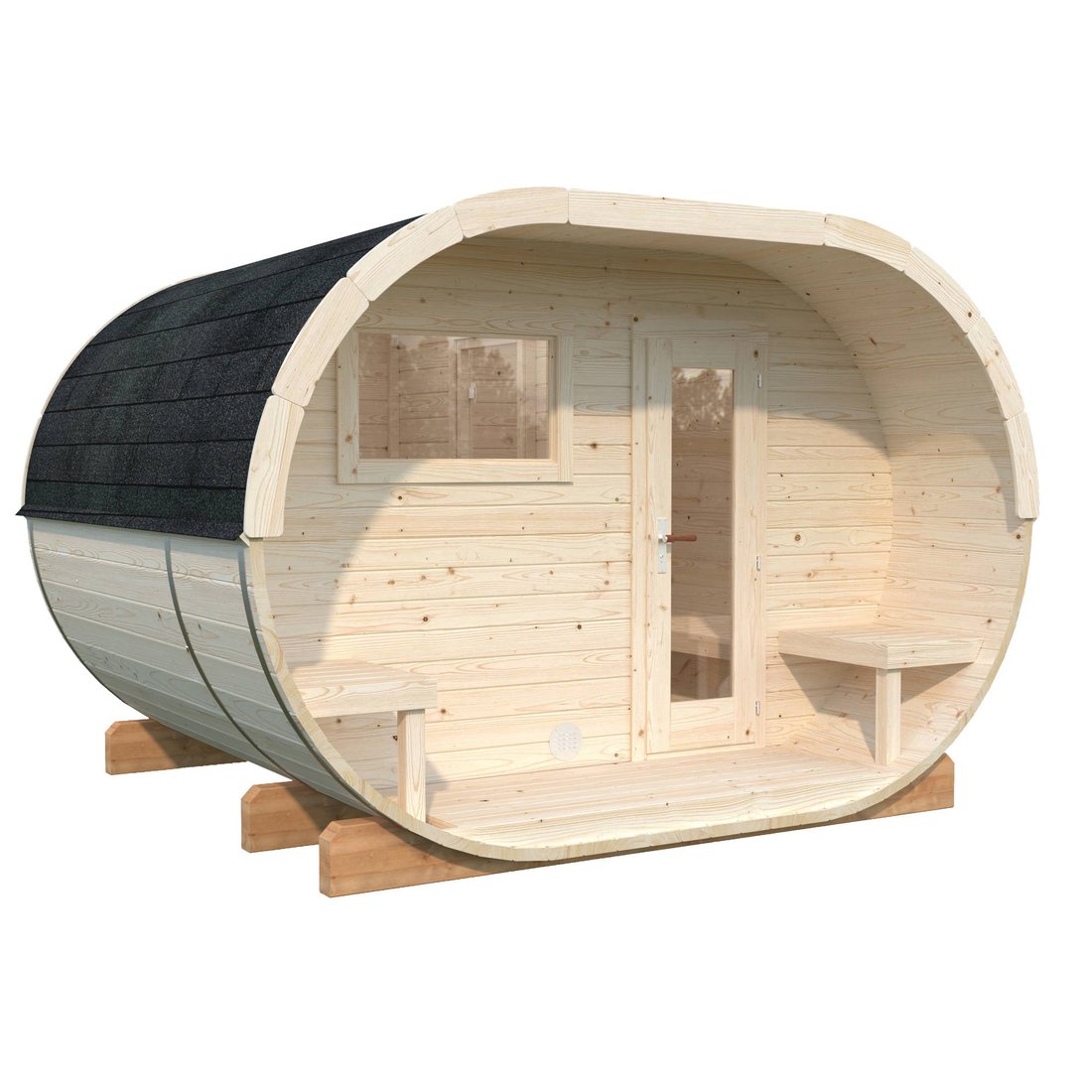Palmako's Anette Garden Sauna Room is spacious and inviting, with plenty of room to stretch out and relax. The wood-panelled walls and ceiling create a warm and inviting atmosphere, while the Optional heater ensures that the sauna is always at the perfect temperature.