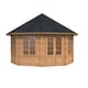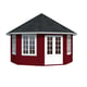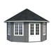 The Palmako Hanna 14.1m² Corner Offices 44mm thick wall construction is extremely sturdy, and the double door and wide Double glazed windows allow plenty of light inside. The 19mm thick floor and 16mm Thick Roof are built to take the weight of many a social gathering and all of this is backed up by a 5 Year Warranty.