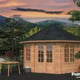 Palmako's 4.2m Hanna Corner Summerhouse robust construction and spacious interior make it perfect for use as a summer house, office, or even just extra storage space.