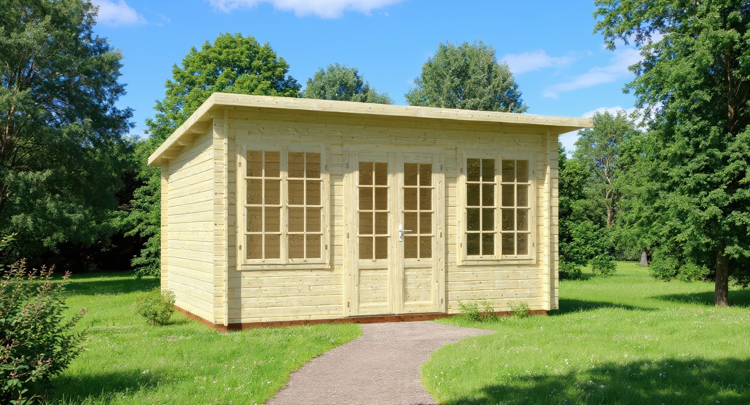 - 4200mm (13ft 8") Wide Wooden Log Cabin - Compact Modern design.