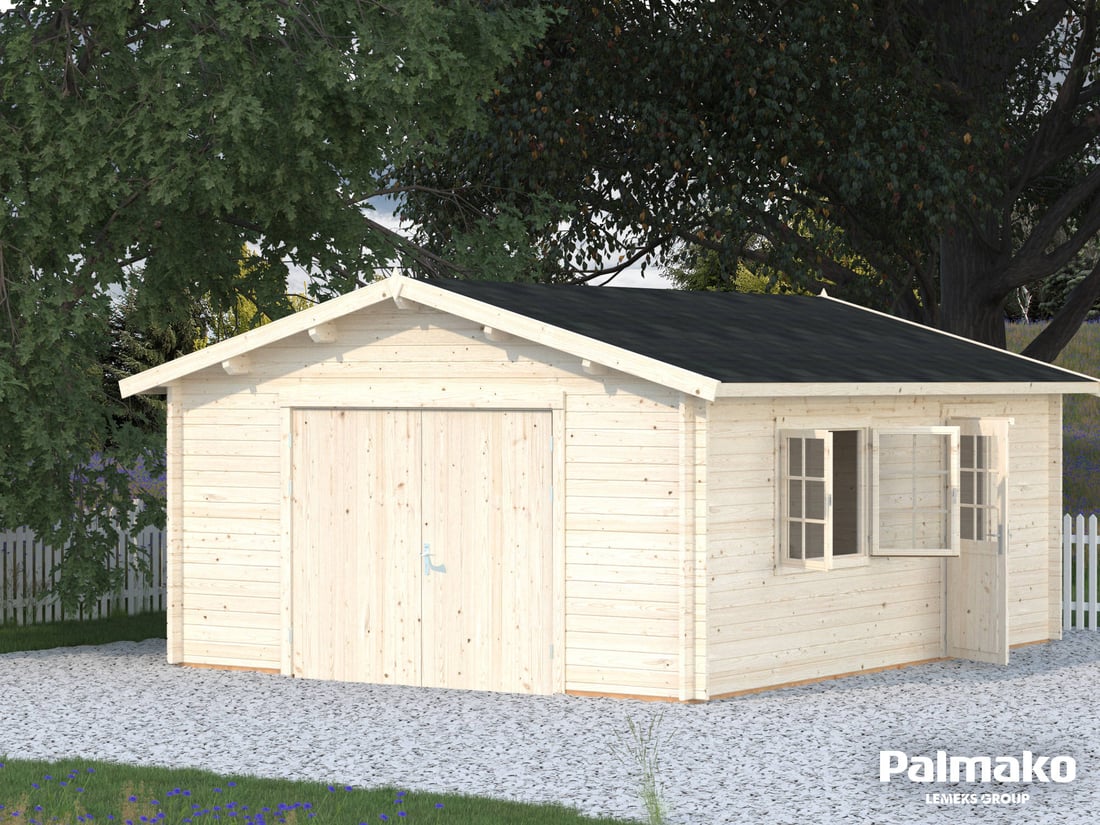 The Palmako Roger 23.9m² Garage with Sturdy Double Wooden Doors Doors 44mm thick wall construction is extremely sturdy, optional door motors and roof coverings are also available to help protect your belongings from the elements. The 19mm Thick Roof is built to take the weight of heavy Snow Loads and all of this is backed up by a 5 Year Warranty.