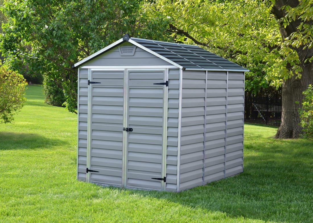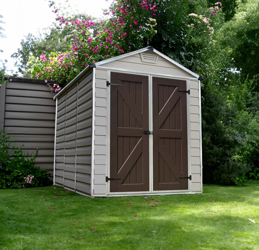 The Palram - Canopia 6 x 8 Plastic Skylight Tan Shed is made from tough shatterproof polycarbonate and has a unique roof that looks solid yet lets light in during the day.