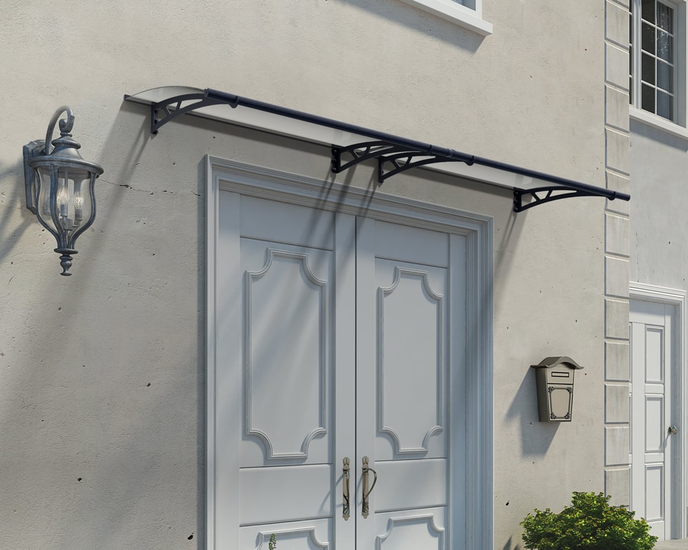 The Palram - Canopia Altair 3000 Door Canopy Dark Grey is a great way to upgrade the look of your home. Now you can protect your door and windows from harsh weather conditions while adding aesthetic appeal with this do-it-yourself product. .