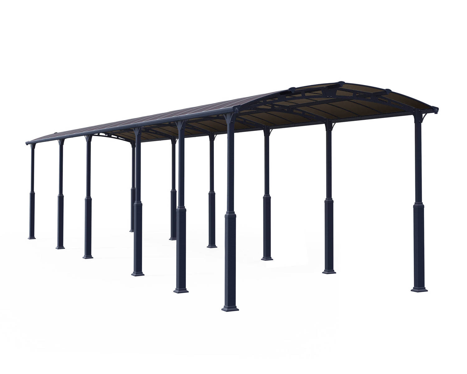 The Arcadia Alpine 11ft x 42ft gazebo has UV protected virtually unbreakable Grey twin wall Polycarbonate which will keep harmful rays away from your paint work and your skin! The versatility of the Arcadia means it is just as happy being used as a patio cover as a car port.