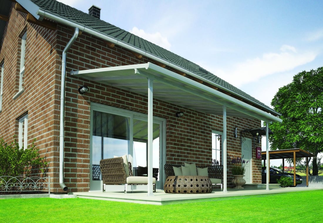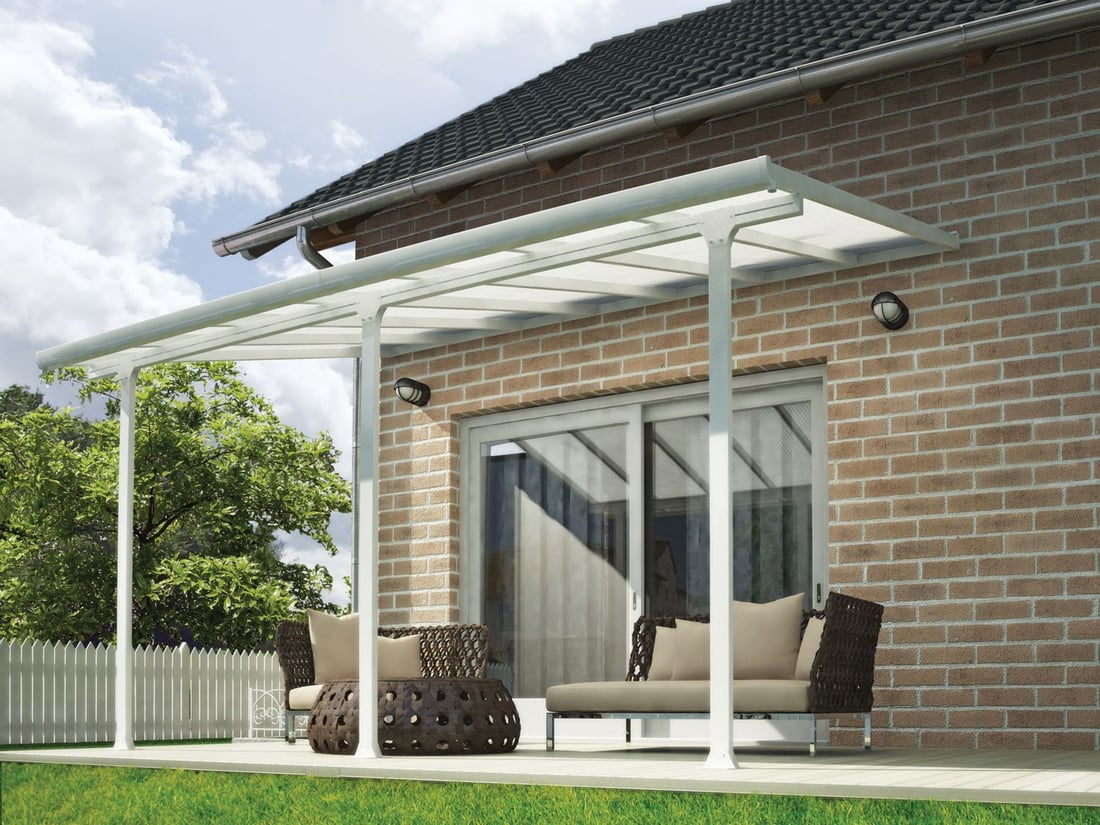 The Ferias 12ft Garden Canopy features unique Multiwall Polycarbonate panels with Super Seal to ensure that your panels stay clear and enable them to take up to 150kgs of snow per square metre. Powder coated White Aluminium frame adds up to a long lasting garden shelter solution.