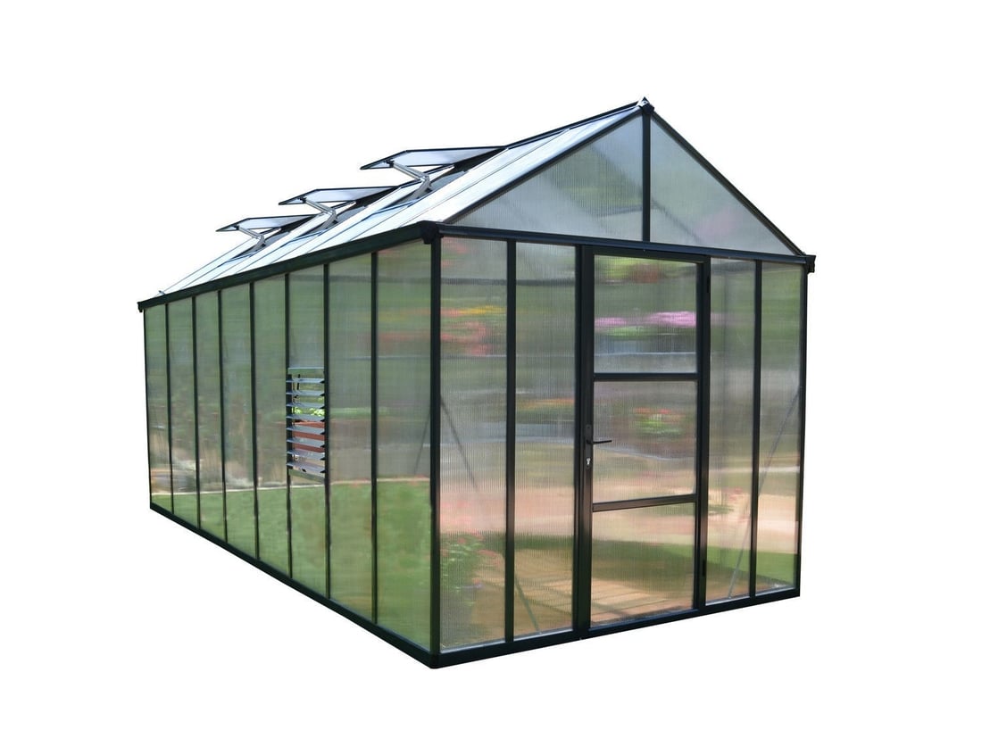The Palram - Canopia Glory 8x16 Polycarbonate Greenhouse has extra thick 10mm Twin Wall Polycarbonate to make it one of the strongest Polycarbonate models on the market. Designed to take up to 100kg snow load!!