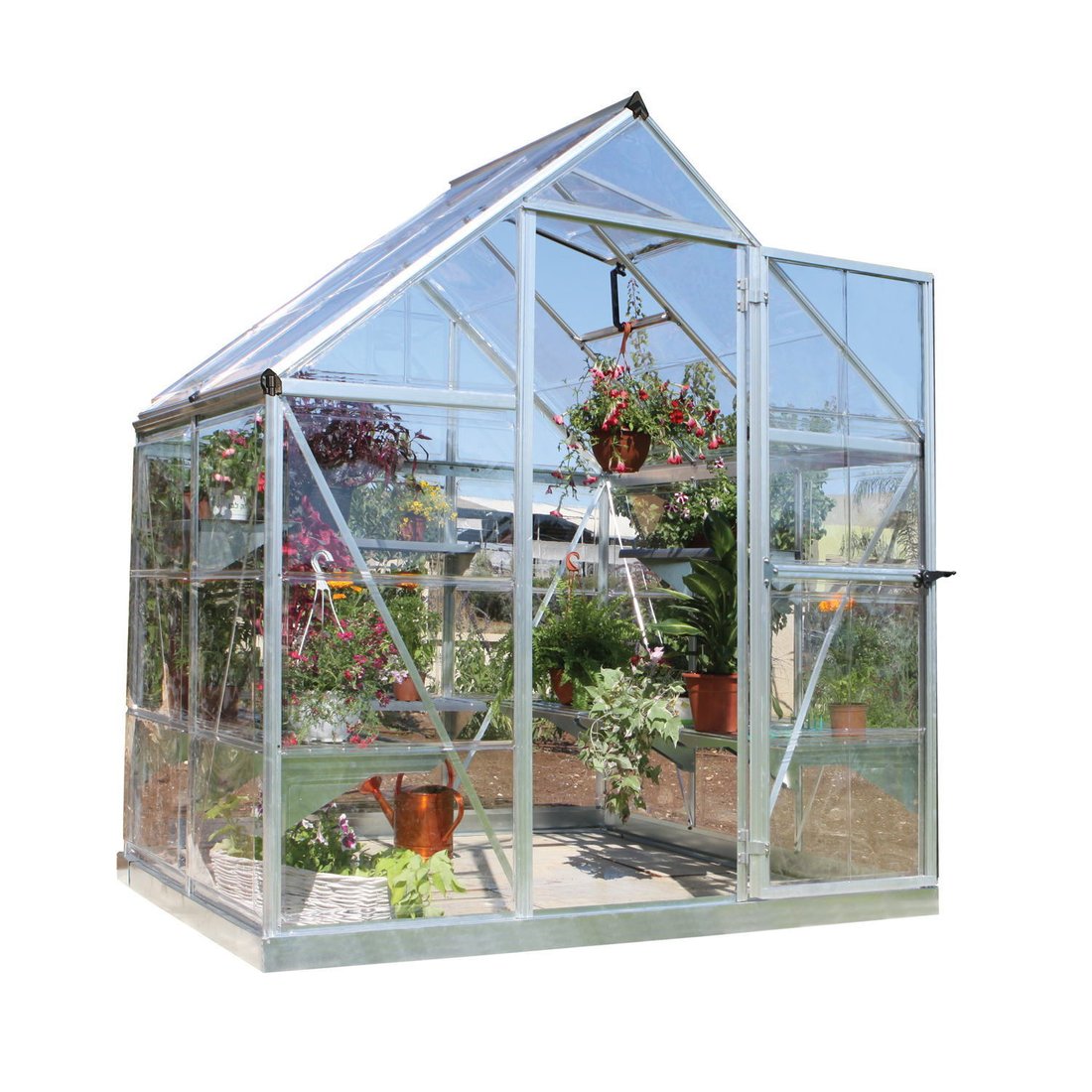 The Palram Canopia Harmony 6x4 is a smart little greenhouse that`s perfect for any little garden or allotment. Clear polycarbonate makes it very safe for family use.