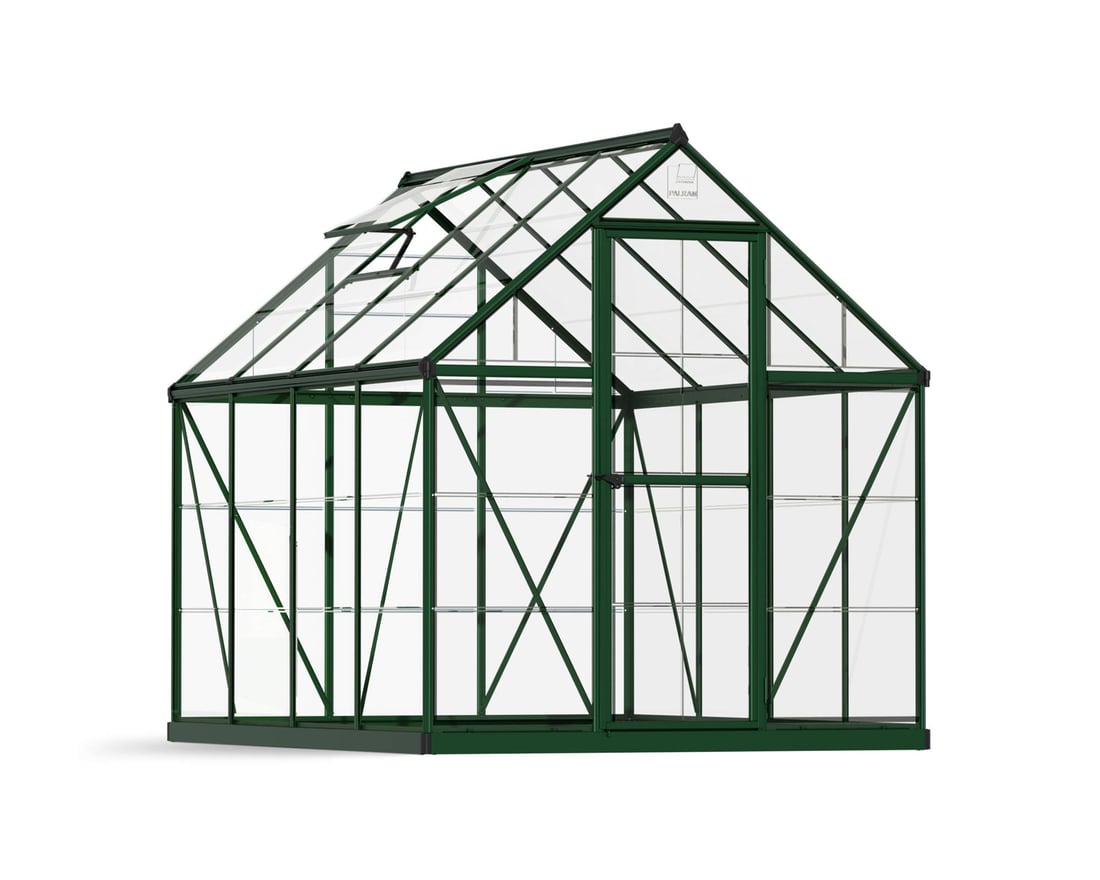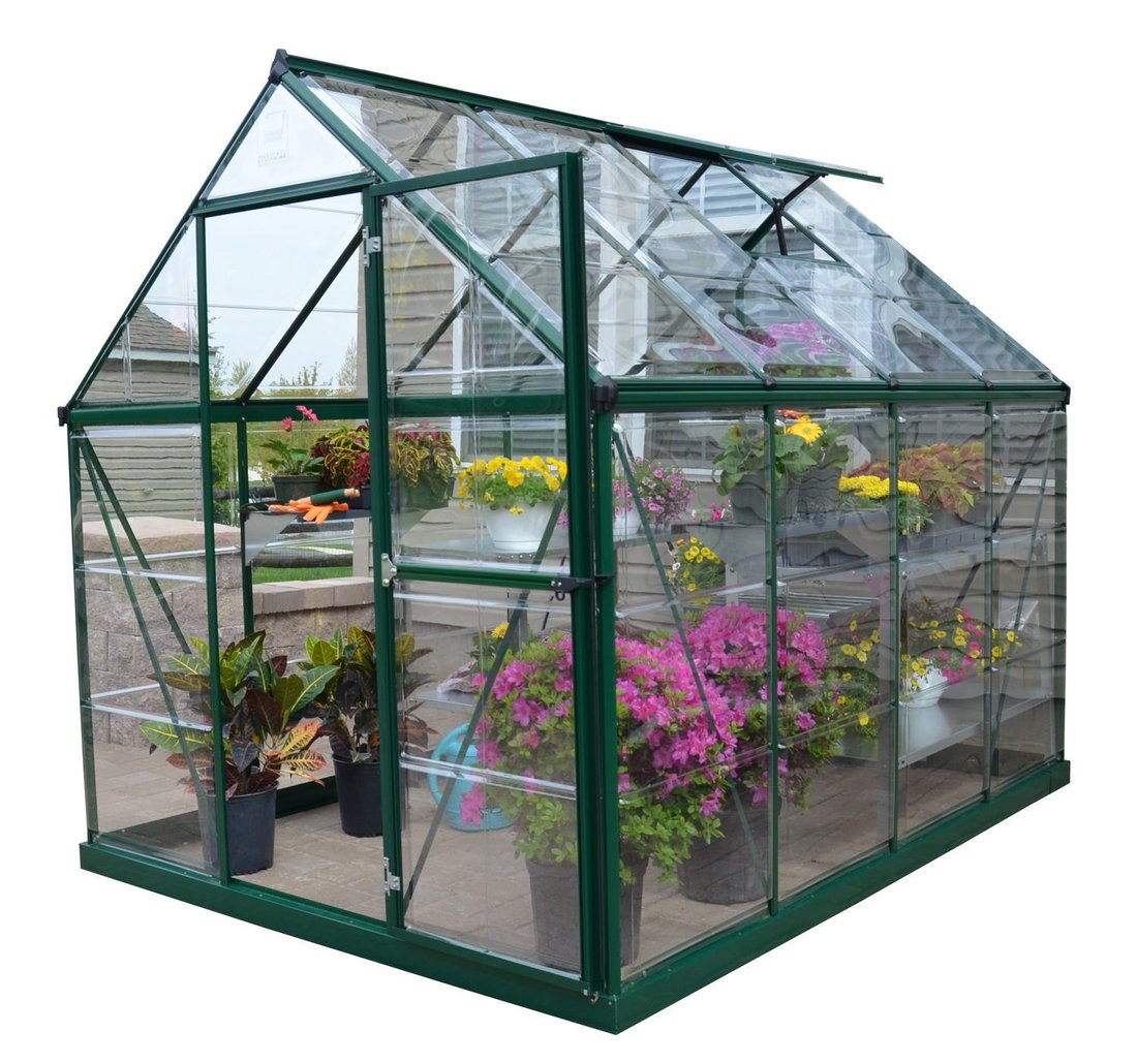 The Palram Canopia Harmony 8x6 in green is a smart little greenhouse that`s perfect for any little garden or allotment. Clear polycarbonate makes it very safe for family use.
