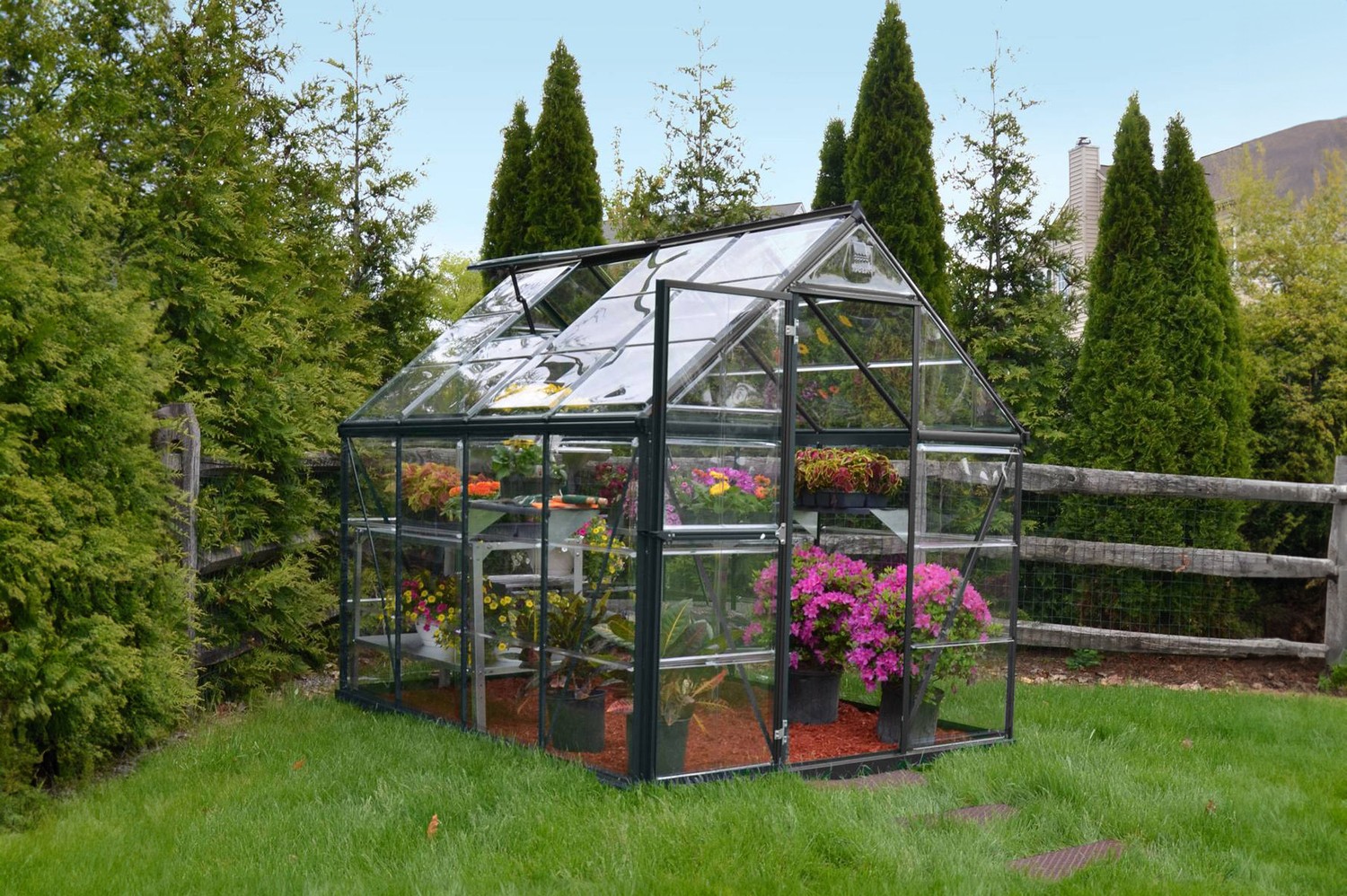 Crystal Clear Polycarbonate Glazing is unique to Palram - Canopia greenhouses. This Shatterproof glazing is ideal for a family garden where safety is paramount.