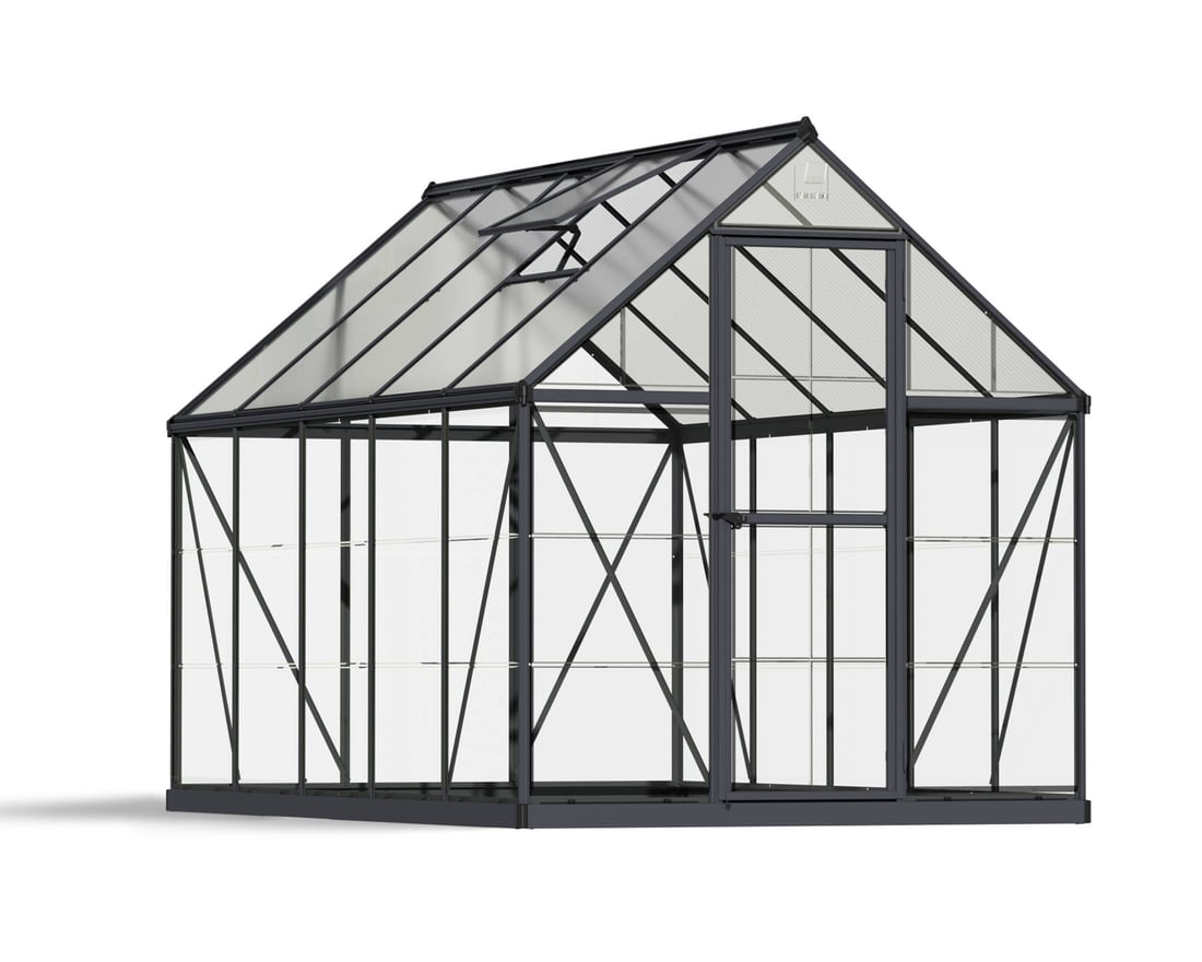 The Palram - Canopia Hybrid 6x10 in Grey combines the benefits of both Twin Wall and Single Wall Polycarbonate into one very clever Greenhouse.