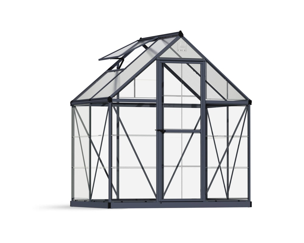 The Palram - Canopia Hybrid 6x4 in Grey combines the benefits of both Twin Wall and Single Wall Polycarbonate into one very clever Greenhouse.