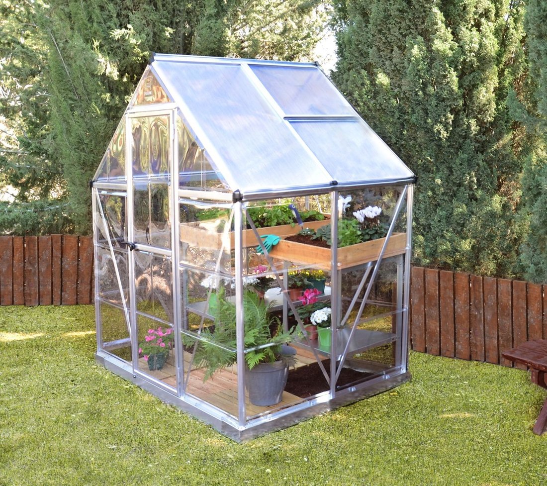 The Palram - Canopia Hybrid 6x4 combines the benefits of both Twin Wall and Single Wall Polycarbonate into one very clever Greenhouse.