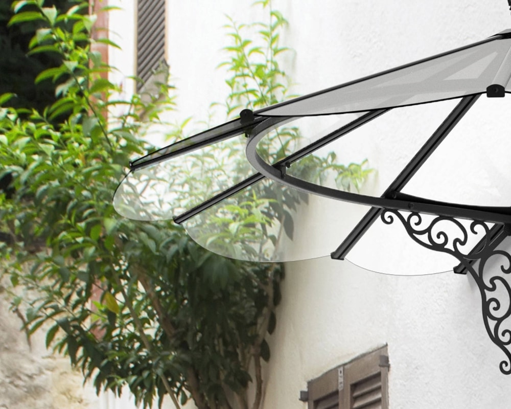 The Palram - Canopia Iris 1780 Door Canopy Black combines a traditional French look with modern materials. Definitely more Rural than Urban, the Iris would look perfect on an older or more classically styled home.