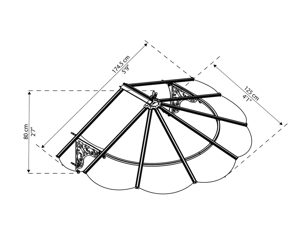 The Iris 1780 is constructed from Powder coated Galvanised Steel and the covering is 4mm Crystal Clear Acrylic which is tested to take up to 150kgs of snow and is wind resistant to 75mph.