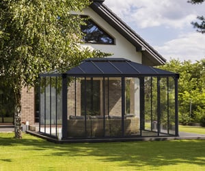 The Palram - Canopia Ledro Polycarbonate Gardenroom is the brand new greenhouse model from Palram - Canopia. This new model is very versatile and can be used for pleasurable gardening, a hot tub room or relaxing in in the summer, with it's lovely wide double doors and low threshold entrance.