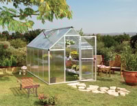 The Palram - Canopia Mythos 6x10 in SIlver features easy to build construction with full Twin Wall Polycarbonate throughout.