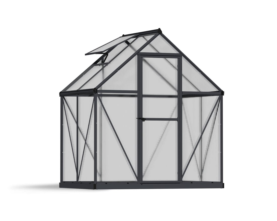 The Palram - Canopia Mythos 6x4 in Grey features easy to build construction with full Twin Wall Polycarbonate throughout.