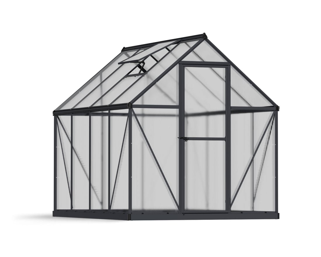 The Palram - Canopia Mythos 6x8 in Grey features easy to build construction with full Twin Wall Polycarbonate throughout.