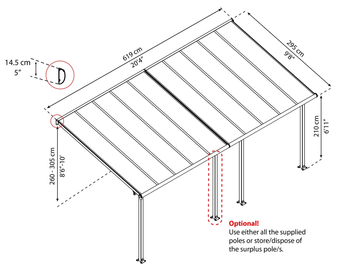 This White Palram - Canopia Olympia 6m canopy comes with a full anchor kit as well of integrated guttering to channel water away. Simple 2 man construction makes it a simple solution for your drive way or garden.