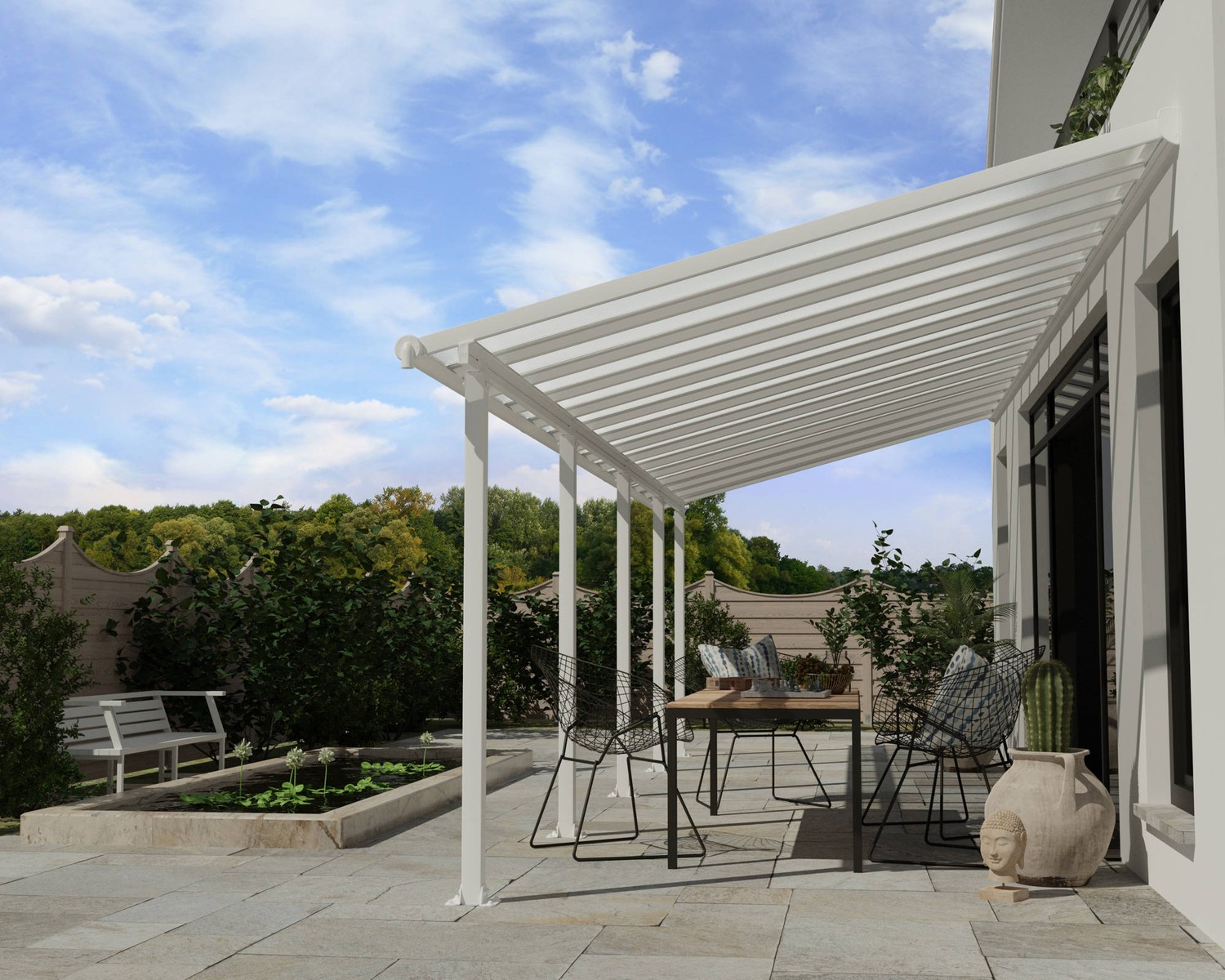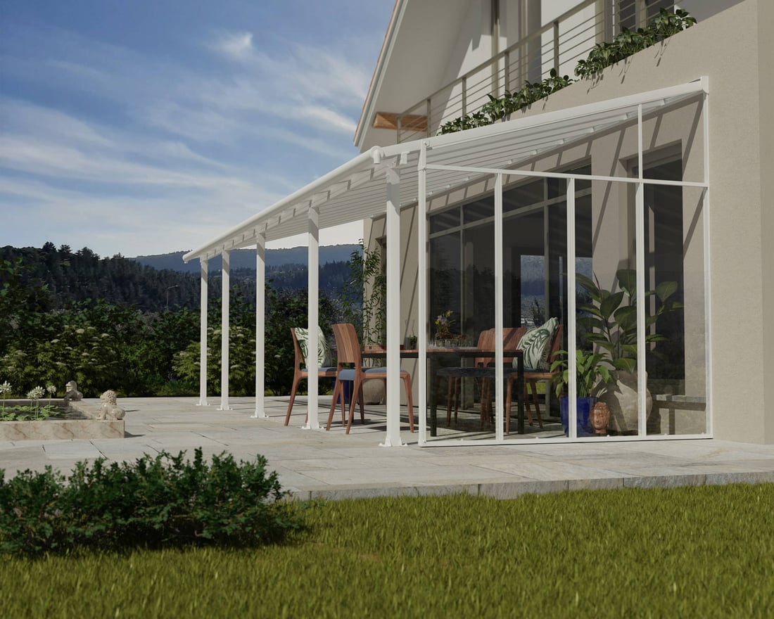 The Palram - Canopia Olympia 3m x 8m Patio Cover White has fully adjustable legs and pitch so it can be made to fit most garden and patio areas. This versatile canopy can be used to provide cover for you and you garden furniture as well as being used as a car port.