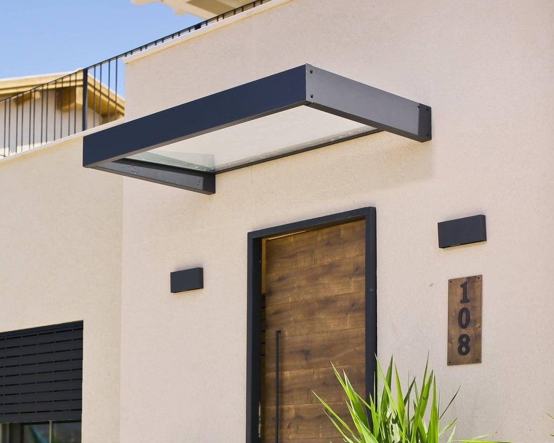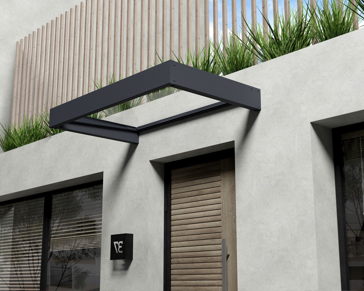 The Palram - Canopia Sophia 1600 Door Canopy Dark Grey has modern sleek lines that makse for a cheap way to imprve the appearance of your property as well as keeping the elements at bay.