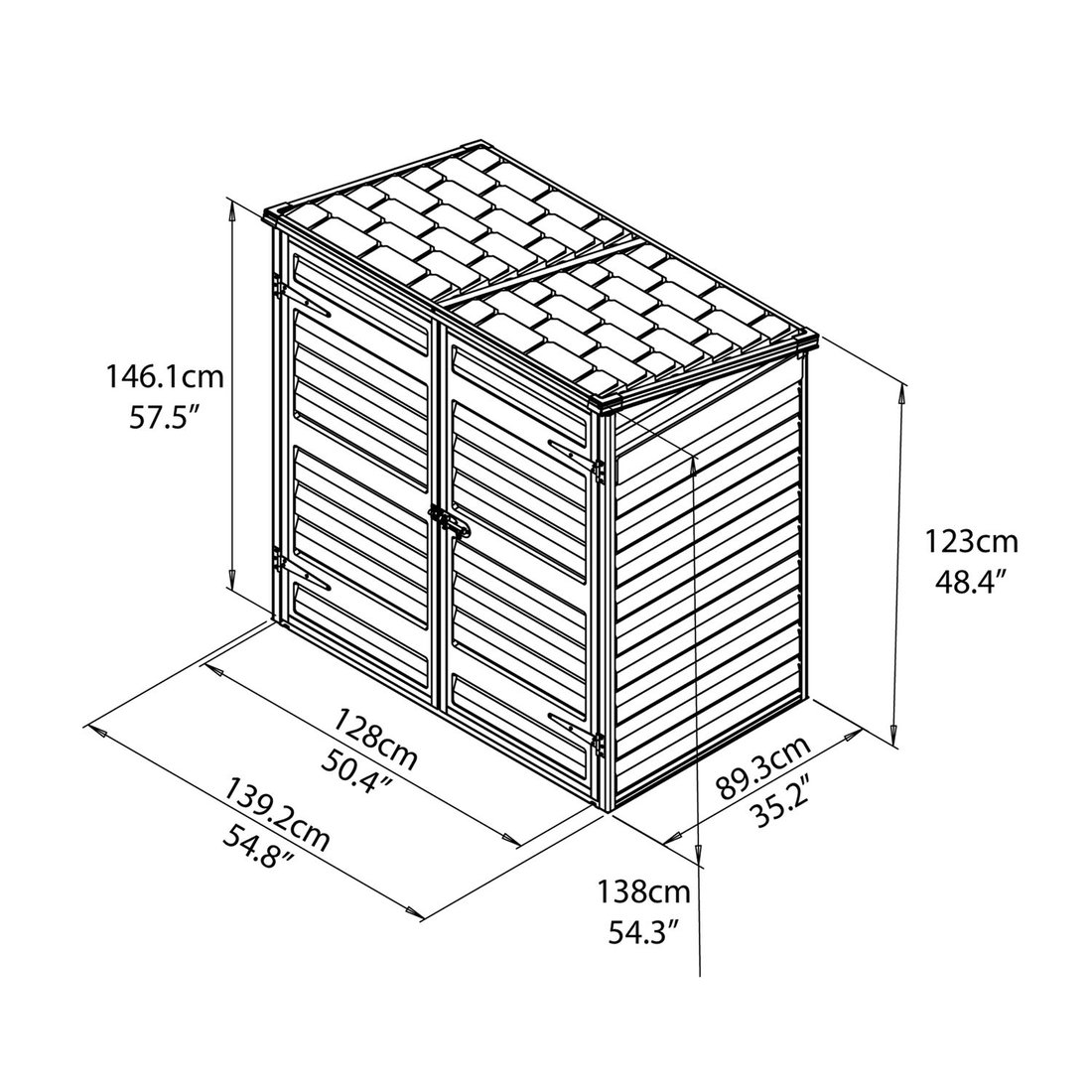The Palram - Canopia 4x3 Grey garden store has a hard wearing integrated non slip PVC floor that can also be secured to a hard surface such as slabs or concrete. Natural light floods into the shed through the whole roof with it`s clever all over opaque appearance finish that is clear from the inside during the day. There are little vents in the gables that allow for good airflow to keep condensation at bay, without letting in pests such as flies and wasps.