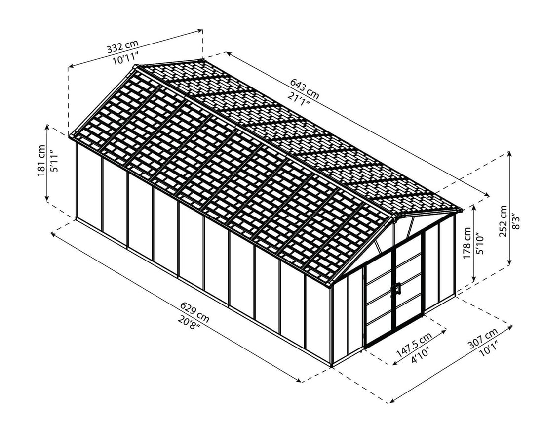 Palram - Canopia Yukon Garden Sheds are easy to assemble and can be erected in a matter of hours when you follow the instructions provided. Our Palram - Canopia 11ft x21ft Sheds for sale are delivered to your door for free by courier. We will call you before shipping to arrange a suitable delivery day to suit you.