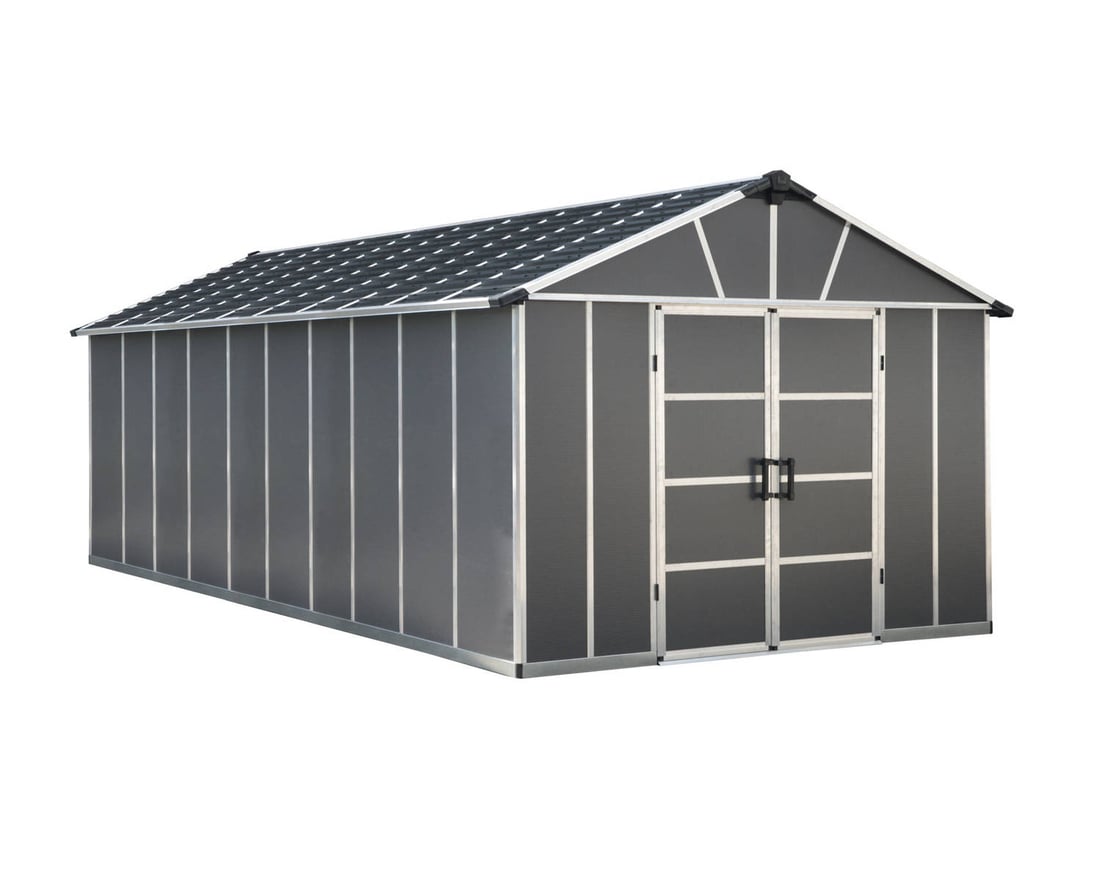 The NEW Palram - Canopia Yukon 11x21 Plastic Shed combines all of the fantastic features of the Skylight range into a much bigger, heavy duty package which comes with a weather resistant Wood Polymer floor!.