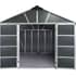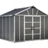 The Palram - Canopia 11x9 garden storage building is made from virtually unbreakable Polycarbonate which is tied into a rust proof Aluminium frame and sits on a Galvanized Steel Perimeter frame which can be fixed down. The shingle styled roof is translucent so it lets light flood into the shed. Also available is an optional heavy duty Wood polymer Composite floor.