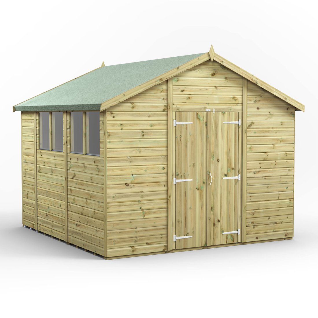 Choose to upgrade to a wider door for easier access or add some handy Folding Racking to help organise your shed.