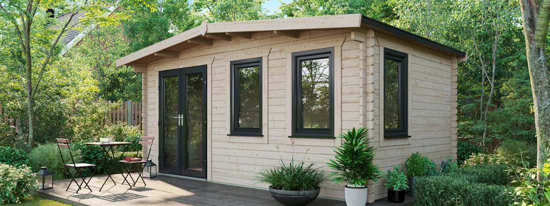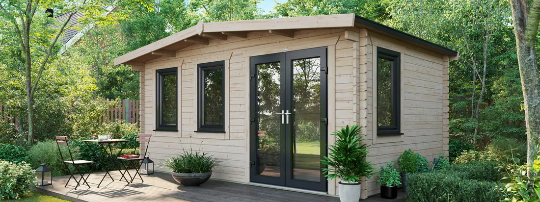 - 4790mm (15ft 8") Wide Log Cabin. - Compact Modern design.