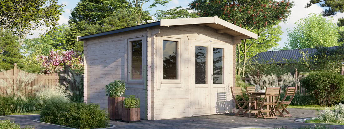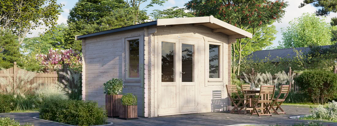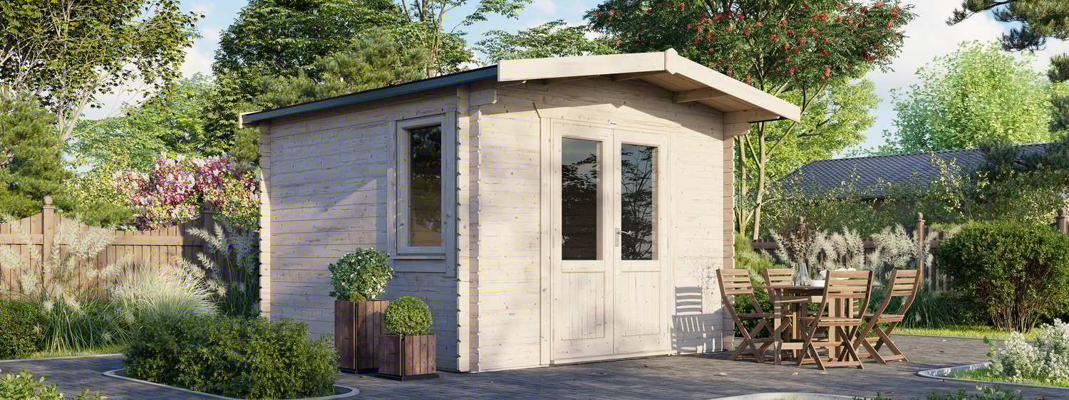 - 3590mm (11ft 8") Wide Log Cabin. - Compact Modern design.