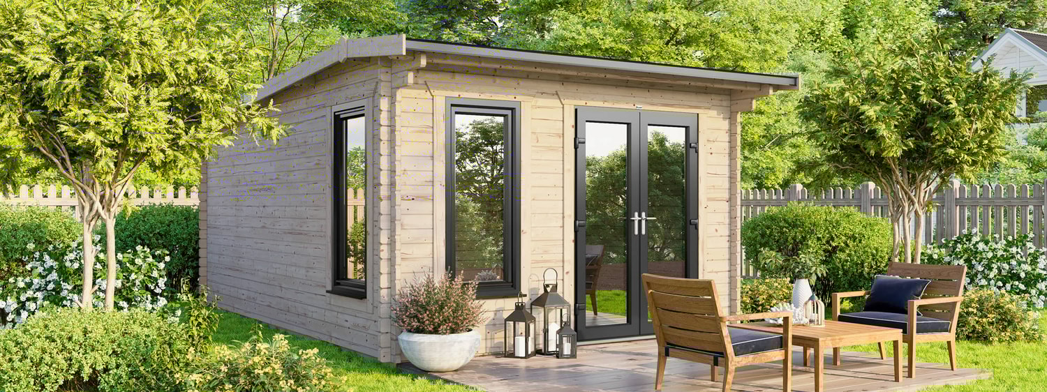 - 3590mm (11ft 8") Wide Log Cabin - Compact Modern design.