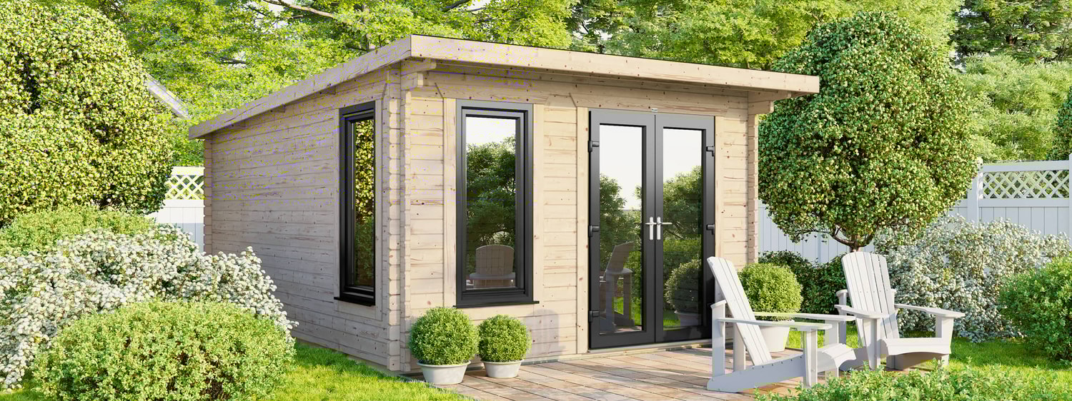 - 3590mm (11ft 8") Wide Log Cabin - Compact Modern design.