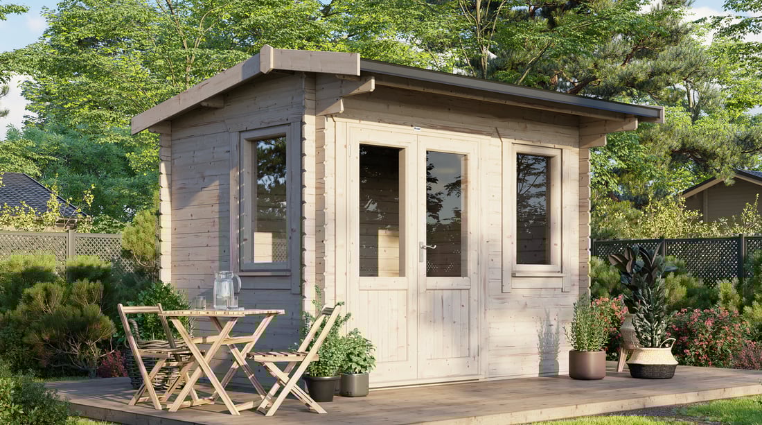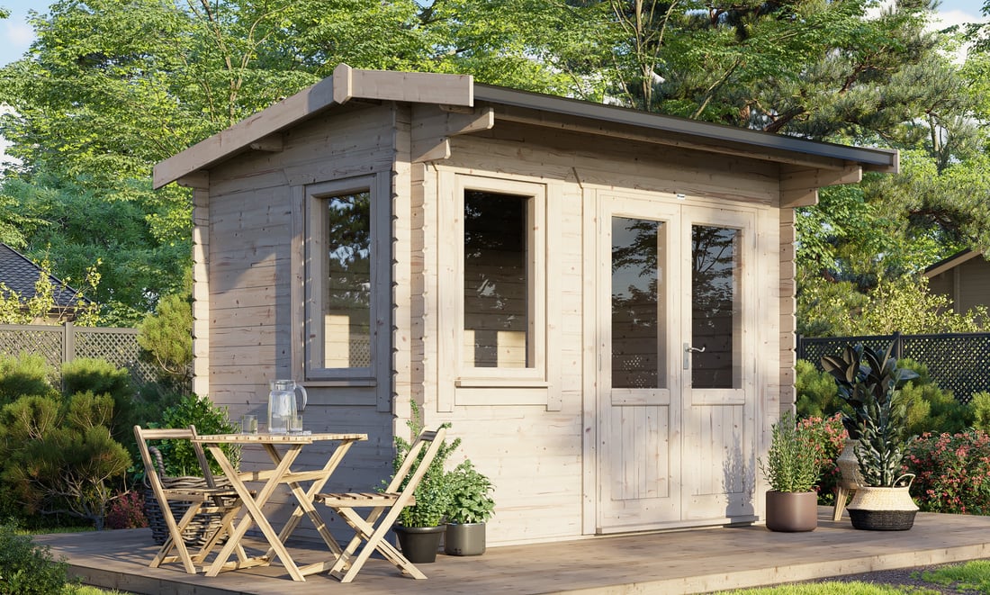 - 3590mm (11ft 8") Wide Log Cabin - Compact Modern design.