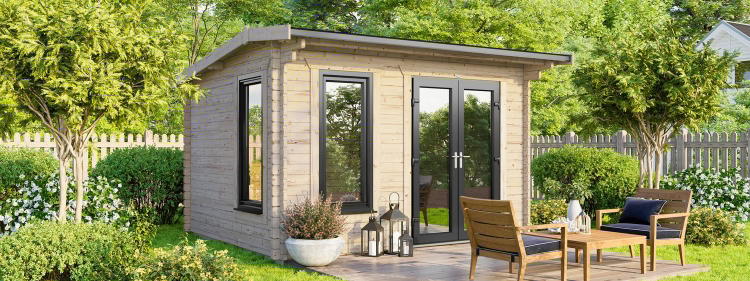 - 3590mm (11ft 8") Wide Log Cabin - Compact Modern design.