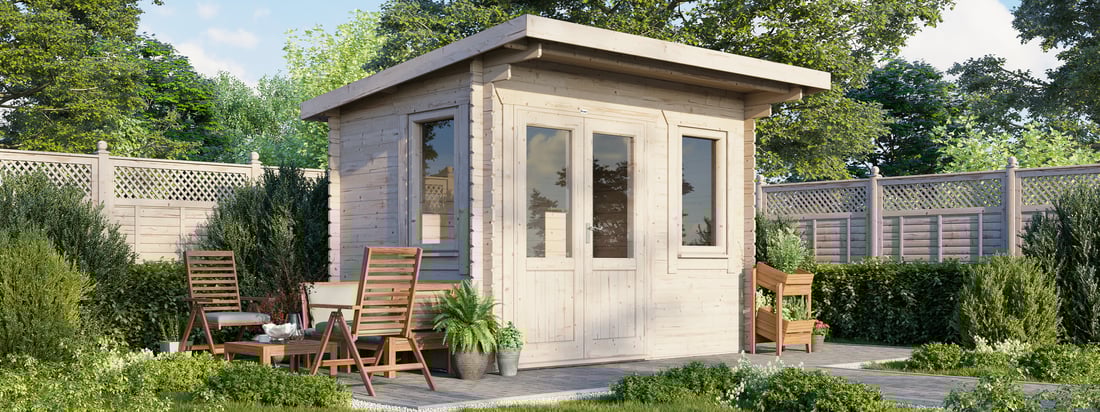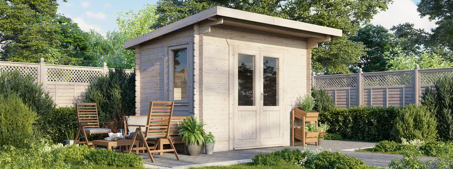 - 3590mm (11ft 8") Wide Log Cabin - Compact Modern design.