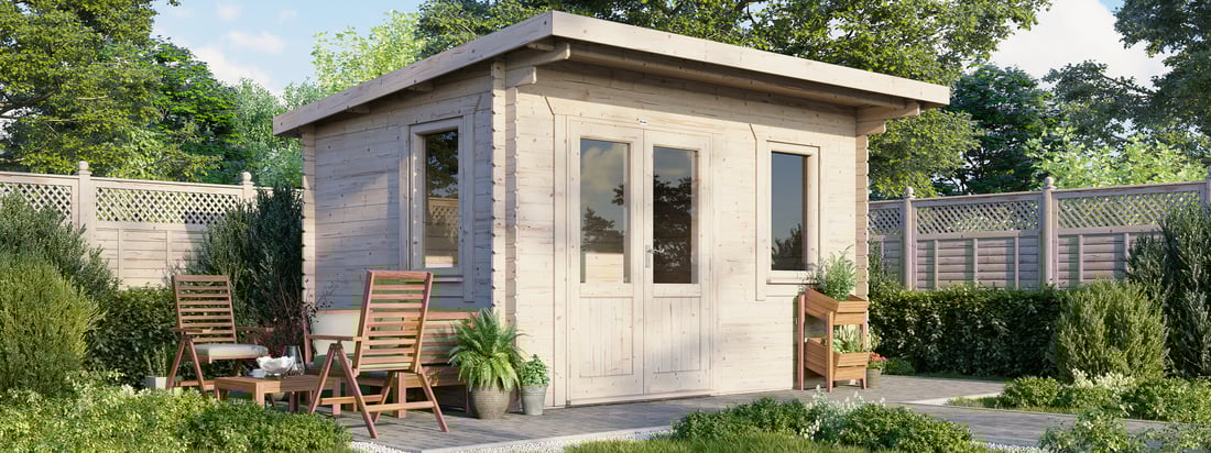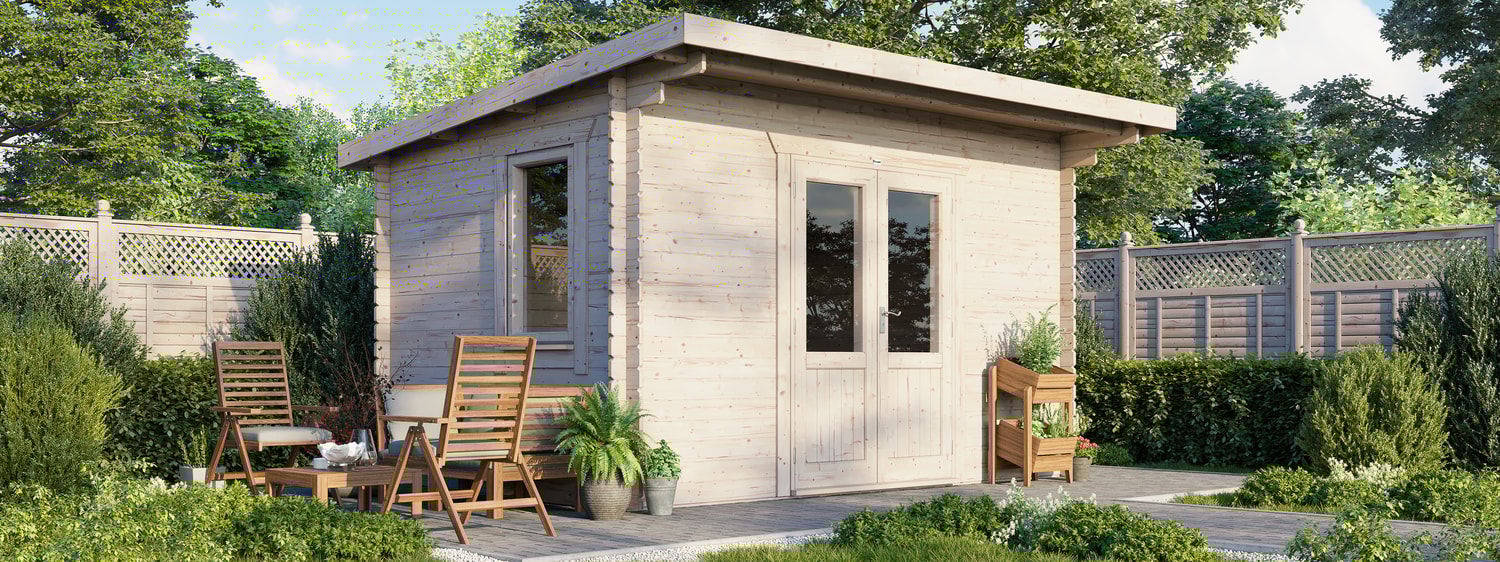 - 4190mm (13ft 8") Wide Log Cabin - Compact Modern design.