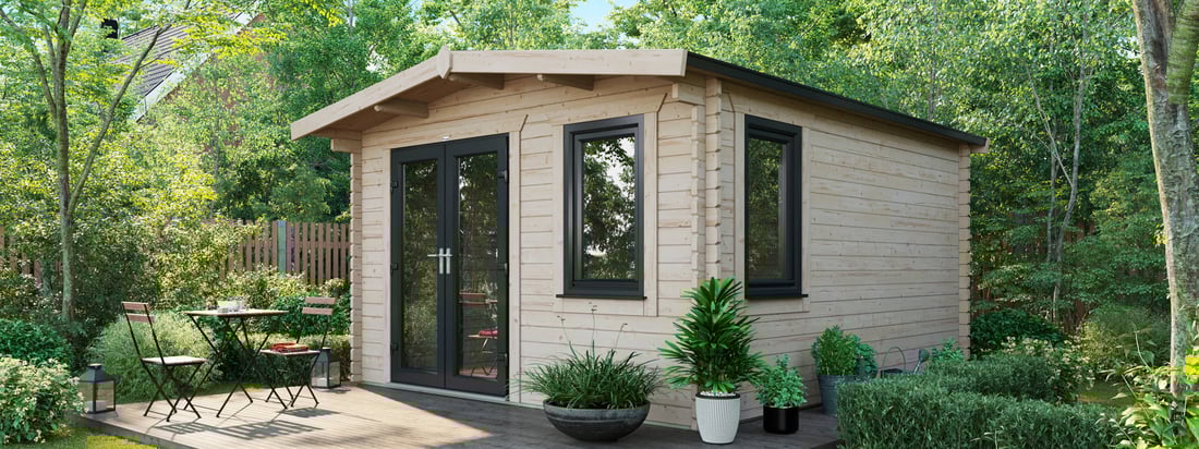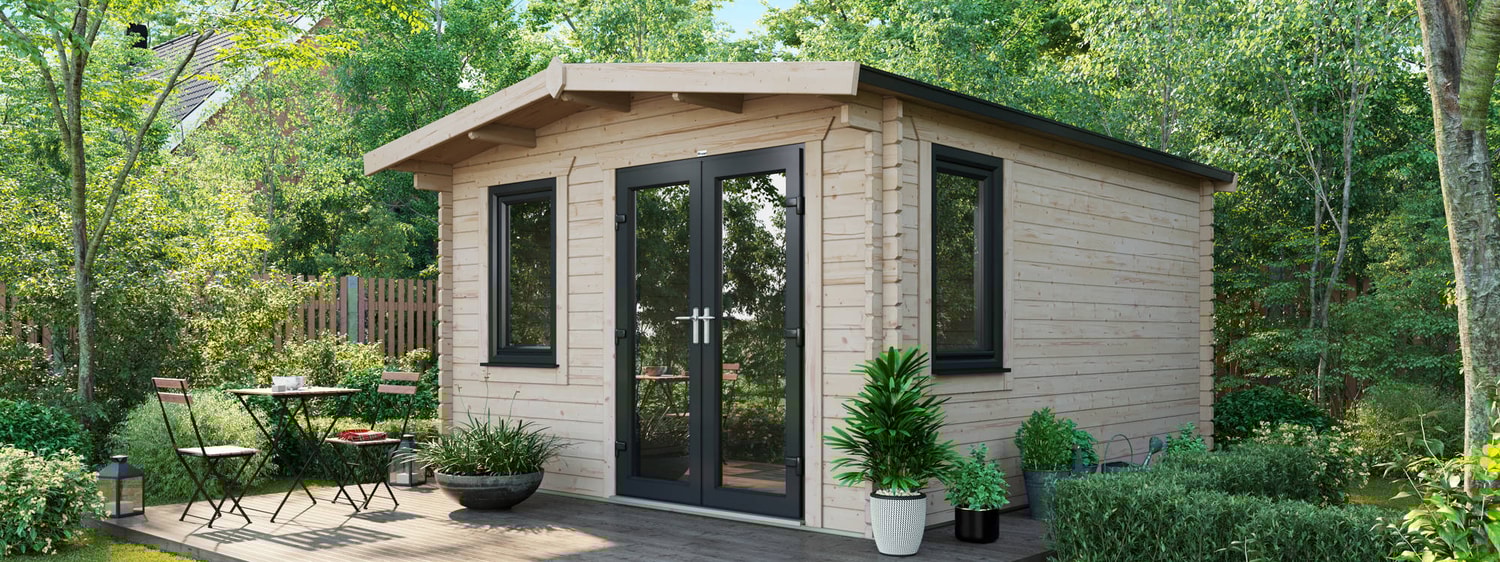 - 3590mm (11ft 8") Wide Log Cabin. - Compact Modern design.