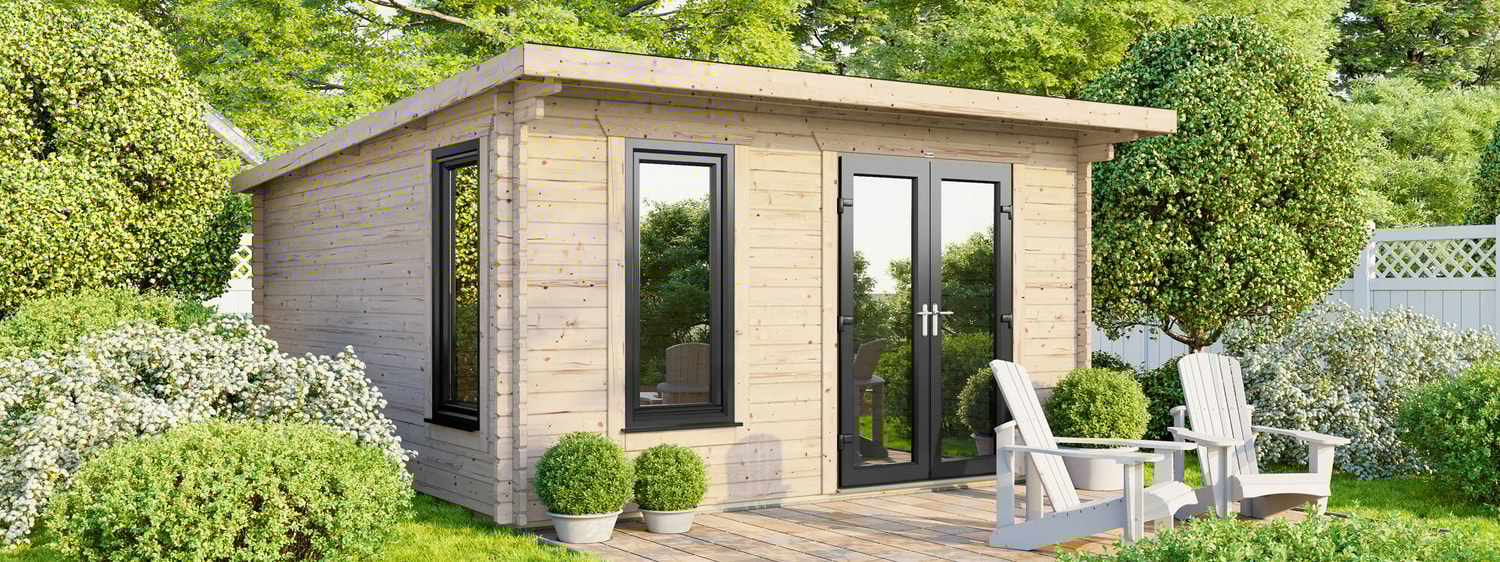 - 4190mm (13ft 8") Wide Log Cabin - Compact Modern design.