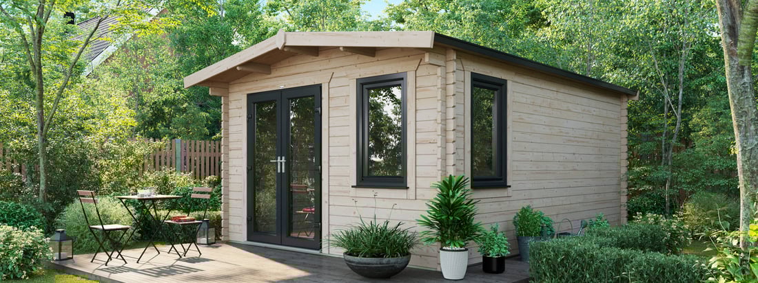 - 3590mm (11ft 8") Wide Log Cabin. - Compact Modern design.
