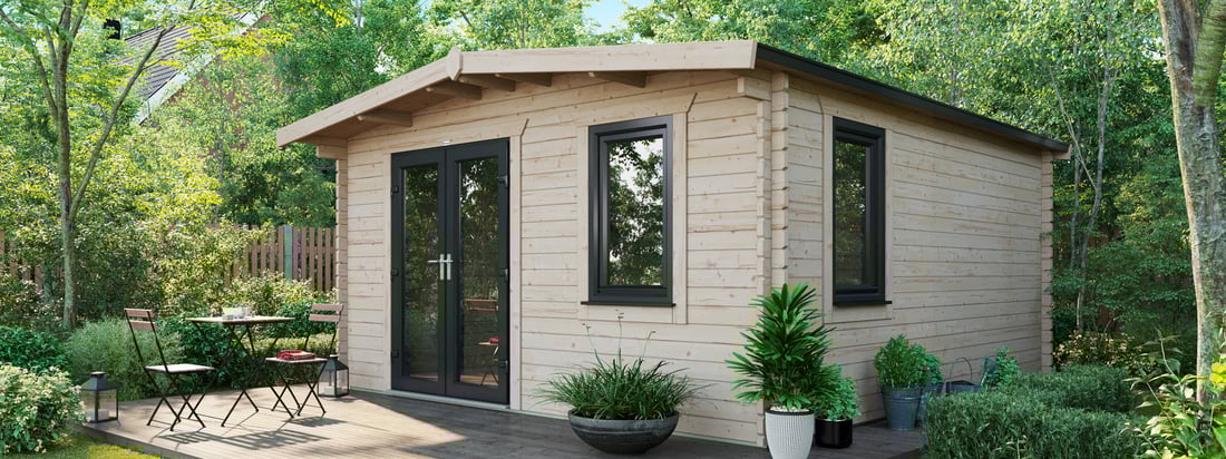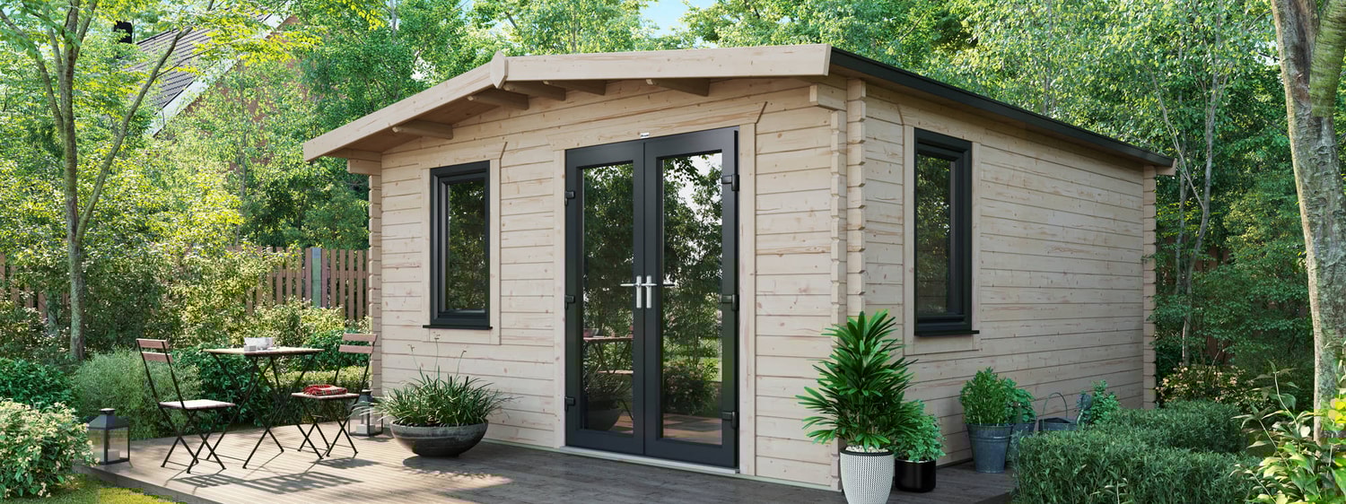 - 4190mm (13ft 8") Wide Log Cabin. - Compact Modern design.