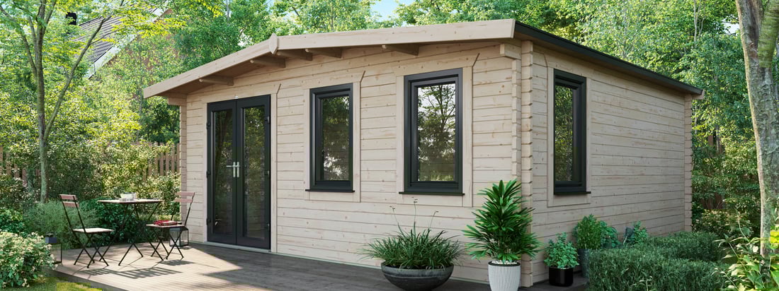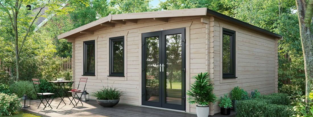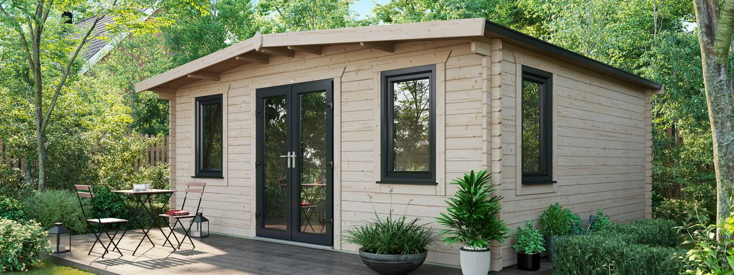- 5390mm (17ft 7") Wide Log Cabin. - Compact Modern design.