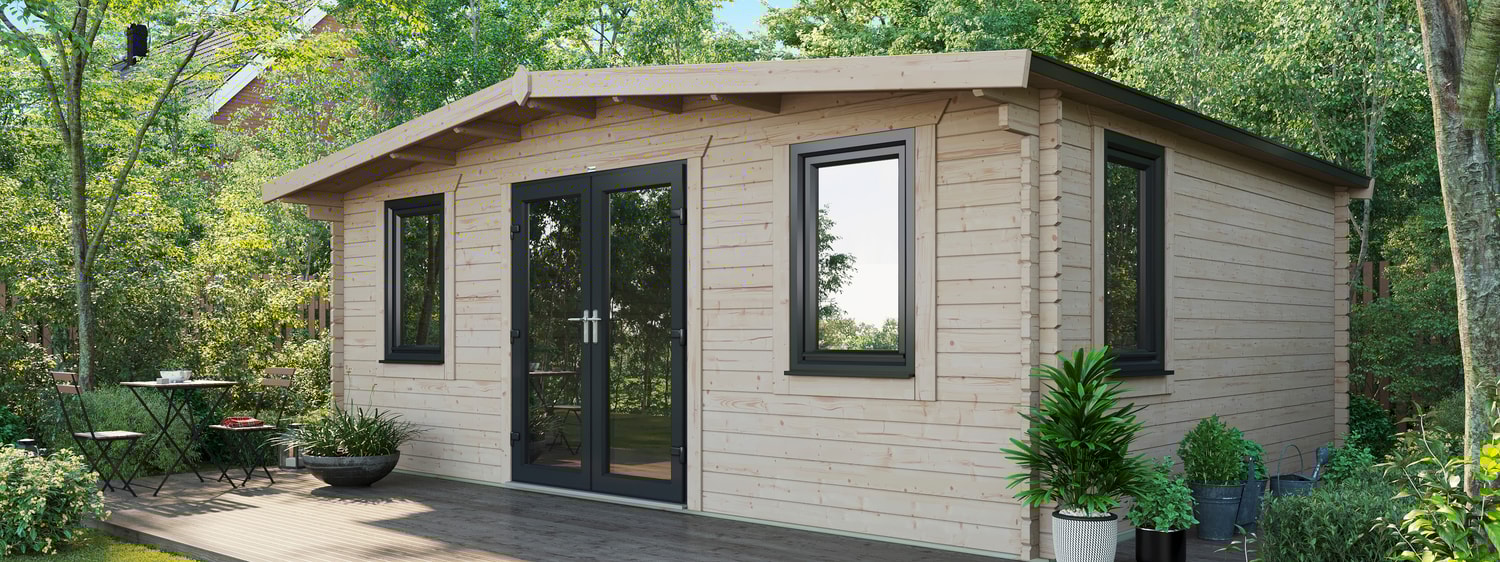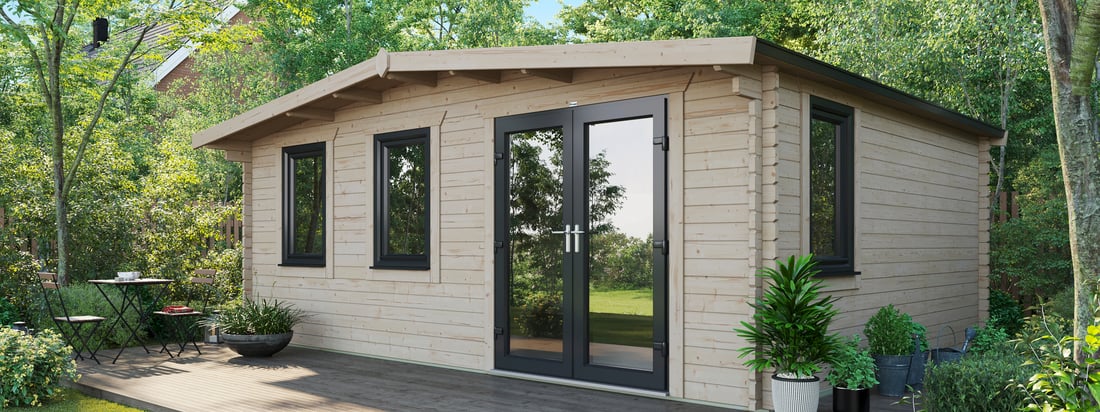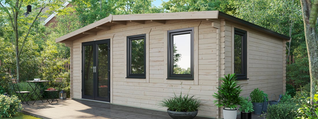 - 5990mm (19ft 8") Wide Log Cabin. - Compact Modern design.