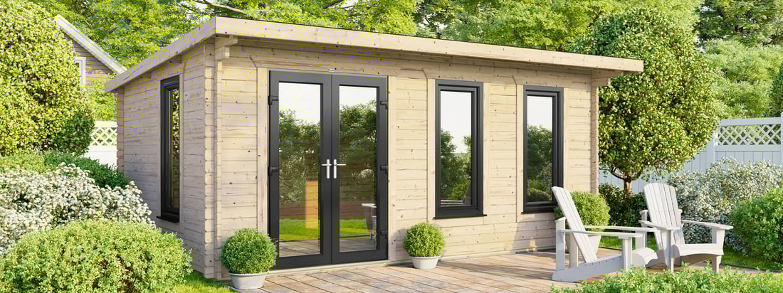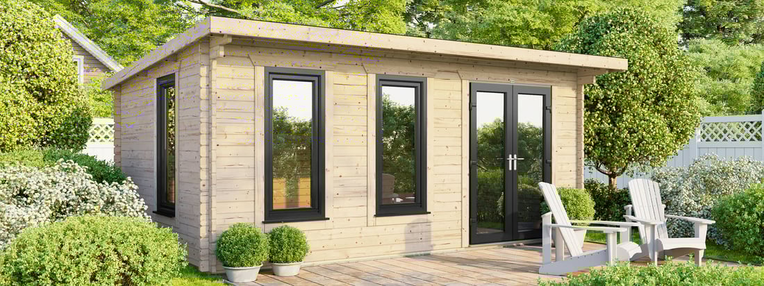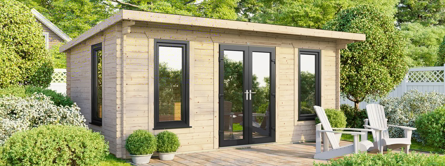 - 5390mm (17ft 8") Wide Log Cabin - Compact Modern design.