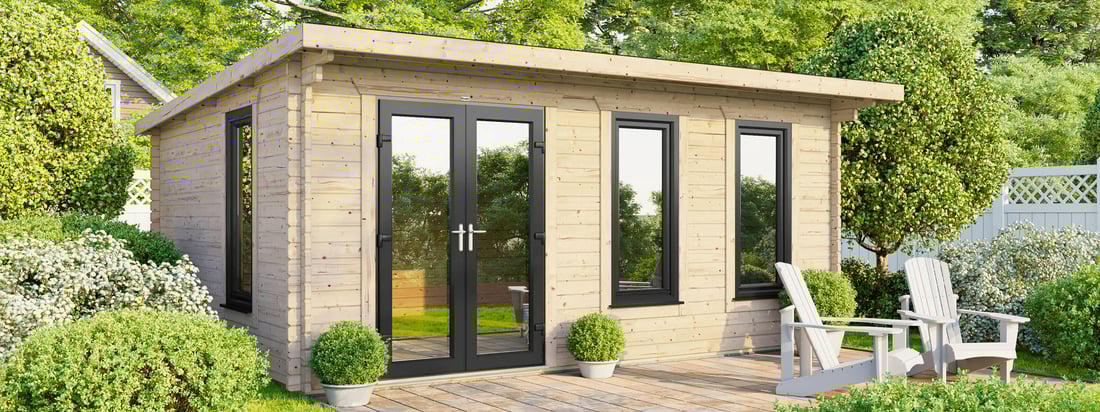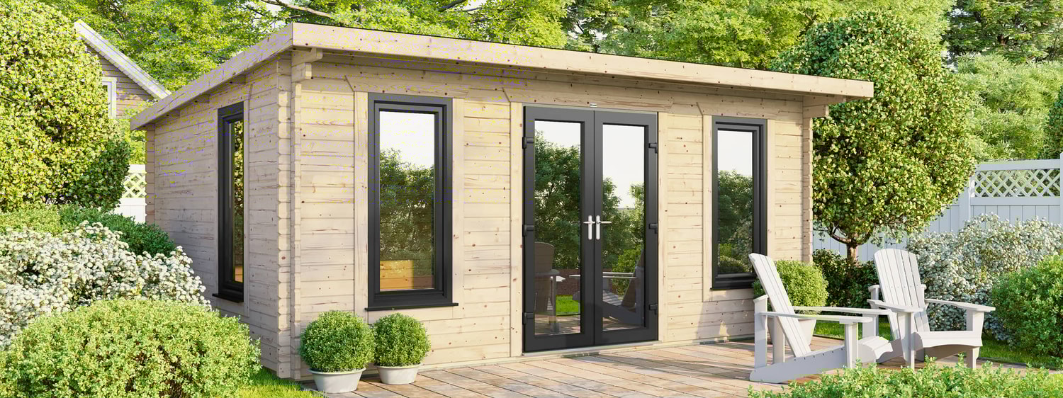 - 5390mm (17ft 8") Wide Log Cabin - Compact Modern design.