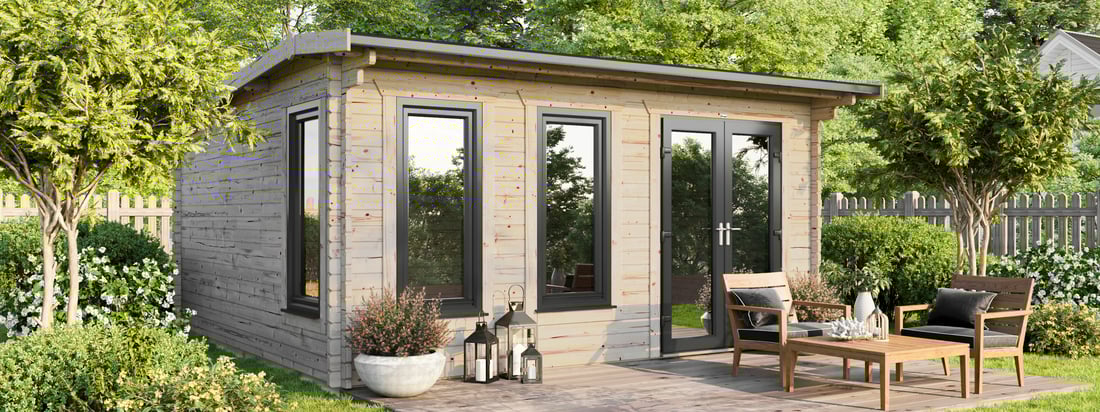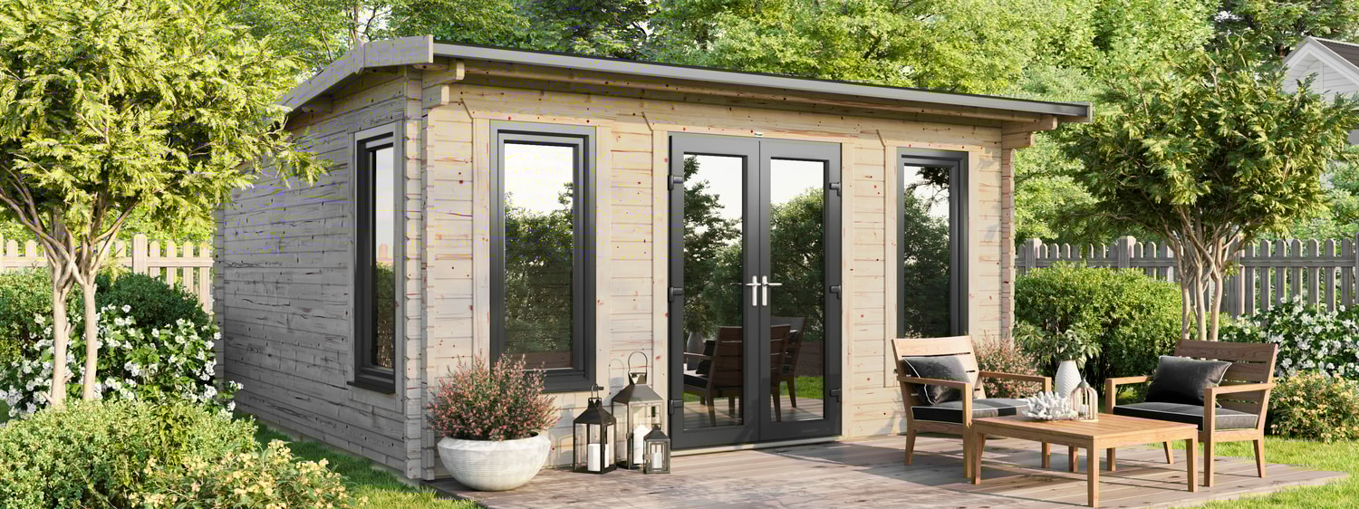- 5390mm (17ft 8") Wide Log Cabin - Compact Modern design.