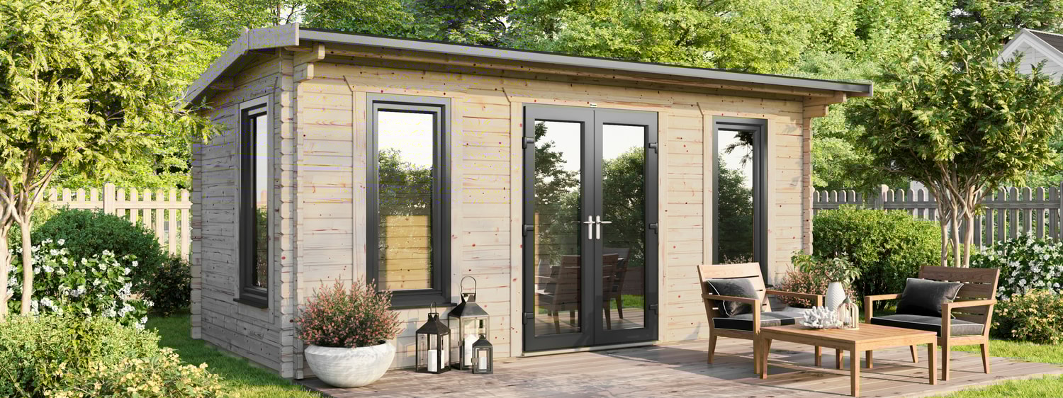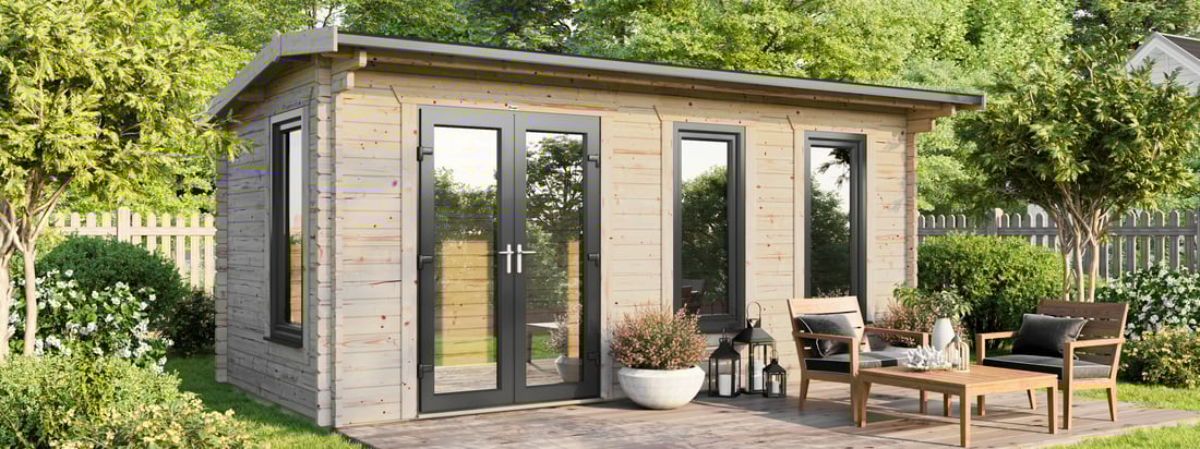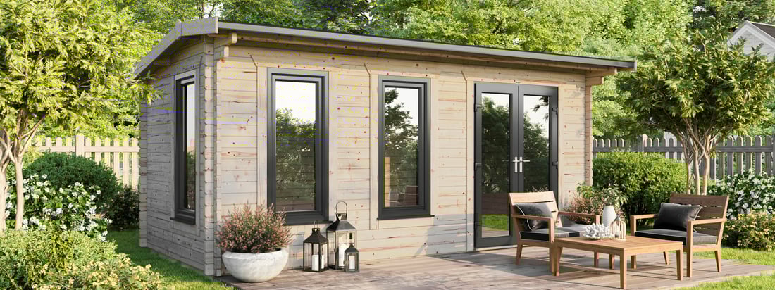 - 5990mm (19ft 8") Wide Log Cabin - Compact Modern design.